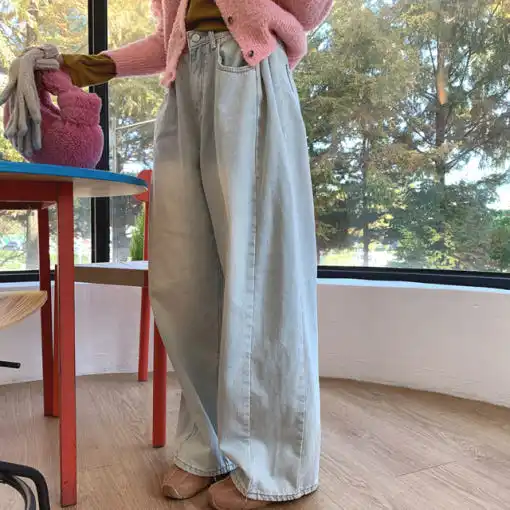Boutique Vente en Gros 2024 Automne Jeans Femme Taille Haute Personnalisé Design Polyvalent Pantalon Large