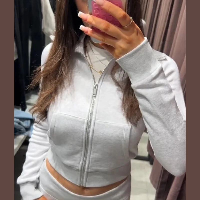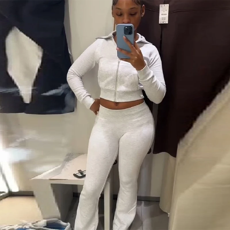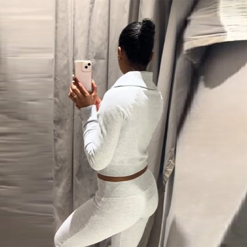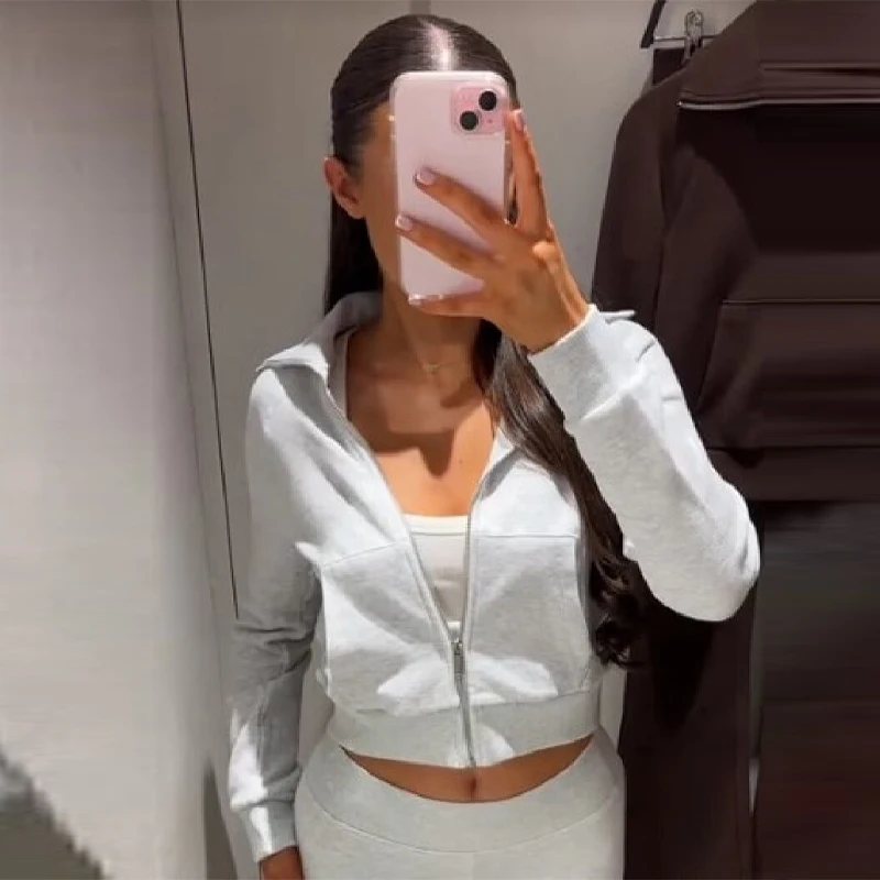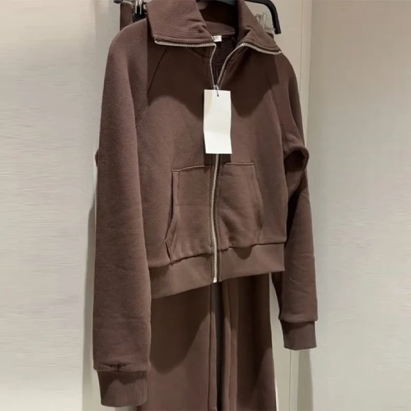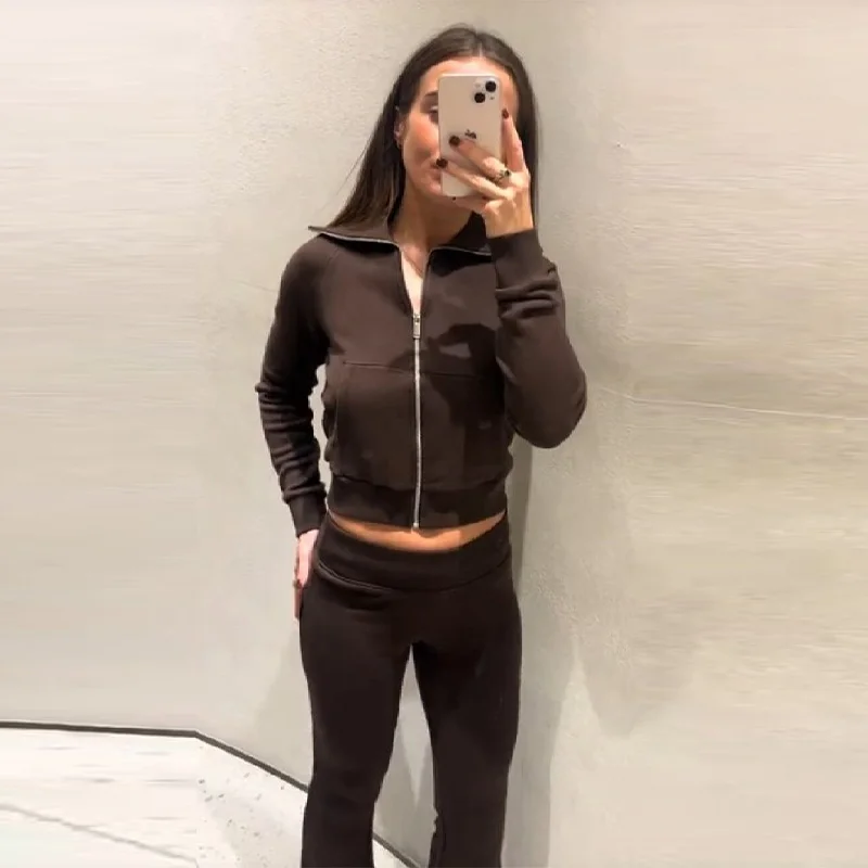 Casual Stylish Women 2 piéces Set Lapel Short Zipper