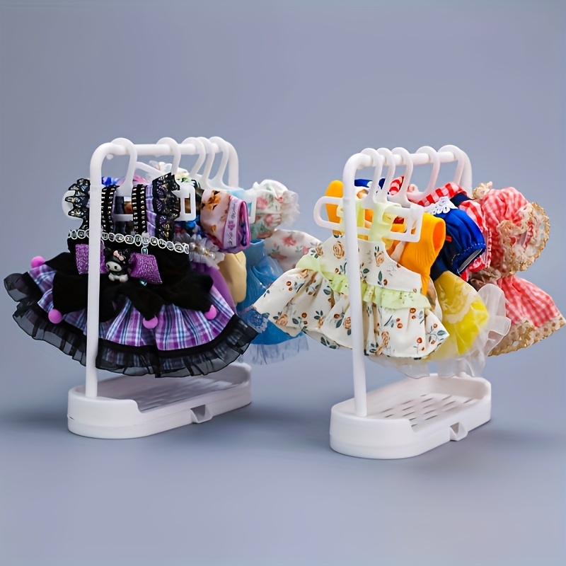 Porte-vêtements Labubu, 1 étagère + 10 cintres, Support d'exposition de vêtements pour poupées, Crochet pour vêtements de poupée, Armoire de rangement pour petites chaussures de poupée