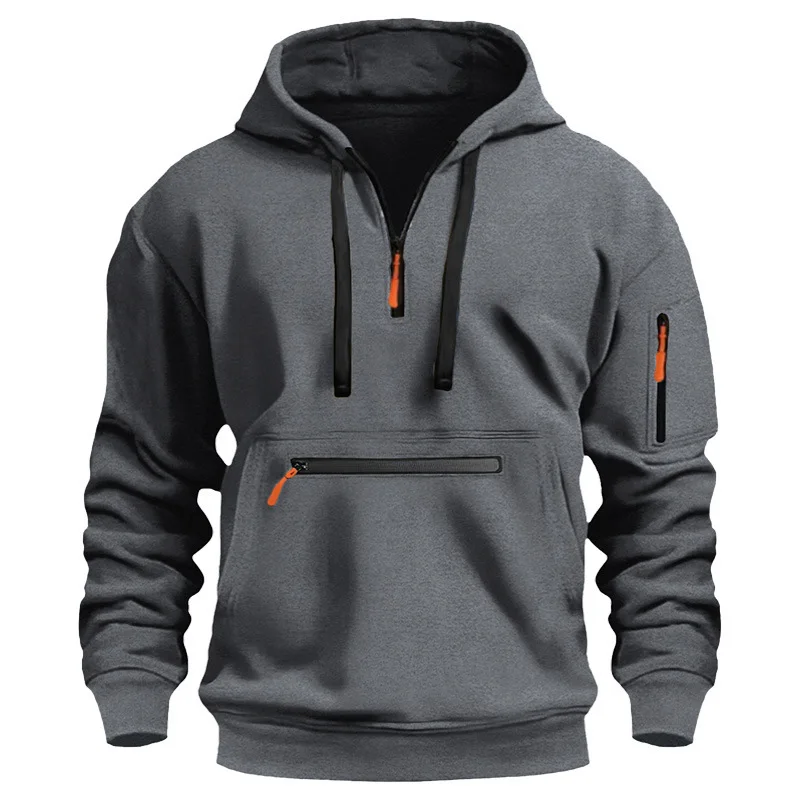 Sweat à capuche de sport décontracté pour hommes, mode printemps et automne, poche sur le bras, corde à tirer, couleur unie, chemisier ample à manches longues, pull
